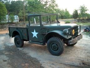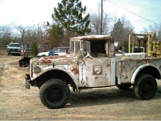 This one I purchased from GSA in Oct 2002 as a parts truck. This is how it looked when I bought it. It turned out to be rust free except for surface rust and some holes in the windshield frame. Runs and drives good. Now has new brakes and seals, clutch, good w/s frame, winch, bed is painted. My 6 year old son has claimed this one and it will be his first truck when he gets his license.