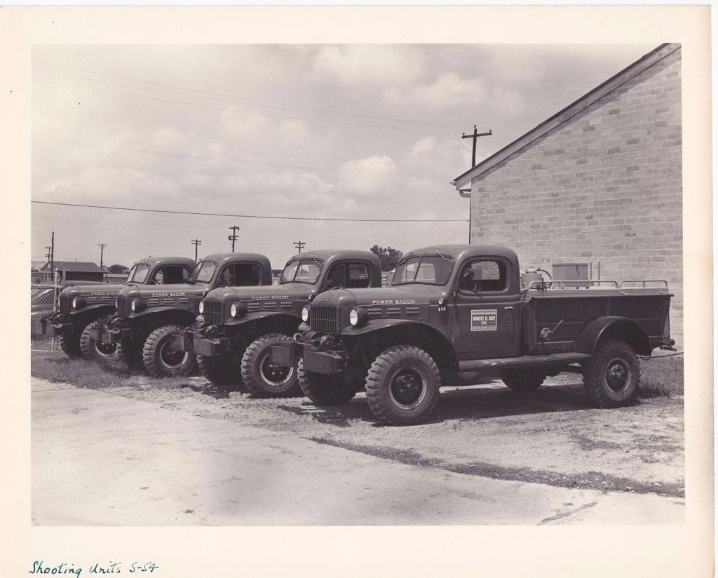 The picture is dated 5/54. Robert H Ray Company operated in Texas and Louisiana until bought by Halliburton. Also posted in the photo archives, is a white Robert H Ray seismograph truck headed to the Middle East. Notice how all the trucks winch cables are wrapped. I wonder if this is how the winches left the factory.