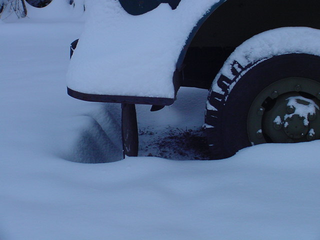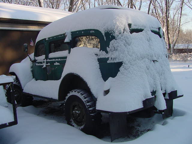 Due to the Beast's age, and the propencity of the IDOT to overkill in the use of salt, once the 1st snow hits, the Beast never leaves Uggville until the spring rains have been going on for a while. I may take it out in the north 40 (HA!) today just to check out it's new tires. On the other hand, my deuce got buried behind a wall of snow as they pushed the snow up around it when plowing the lot it's in. That may make for more interesting pictures.