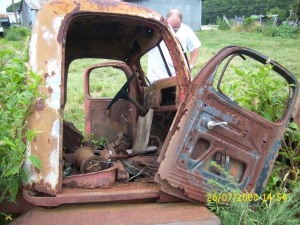 Yea, the whole rear of the truck is hacked off and the only thing left of the axles is a third that is rusted solid.. At some point the spiders had also been welded together as well. The truck has been sitting there for 30 years or more. Evidently the son of the original owner took it out joy riding one night and it got T-boned, so it got parked and there it has sat.Originally posted by Bruce View PostLooks purty picked over?1942 WC53 Carryall in progress.