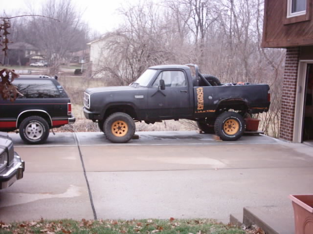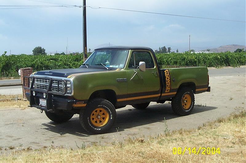 Here's a couple of pics of my 79'. I've owned a few of these and think they're great. Tough and tough looking. As you can see it needs a little work, but thats half the fun. Hoping to put the original paint scheme back on once I find a good go by. Looks like the paint used to be almost orange but what throws me is the wheels and "Power Wagon" decals are yellow. So it anybody has one this color in original shape, I'd love to see pics.