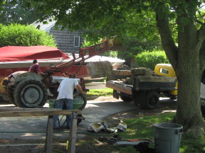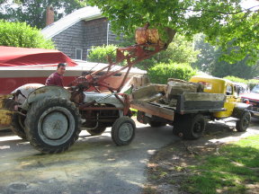 Here's a few pictures of me putting the old Power Wagon to work. I broke up an old concrete stoop and used my 1953 Ford 8N to load it all. I had well over 2000# on the truck and the PTO still dumped it at an idle. To give an idea of the load the mudflaps were about an inch from the ground and they are right at 9" when empty! Handled it like a dream!