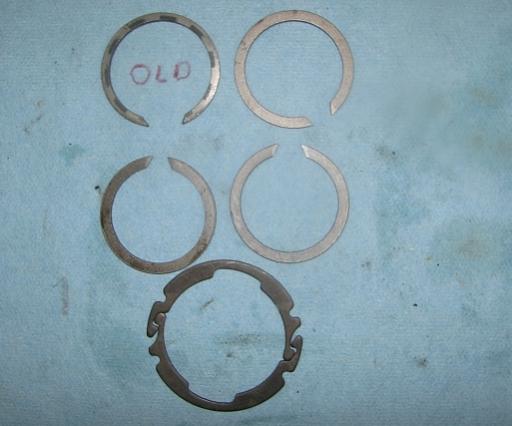 4) That snap ring for the synchronizer clutch should not be re-used. If you look closely in the picture, the old one is slightly expanded from the new ones.