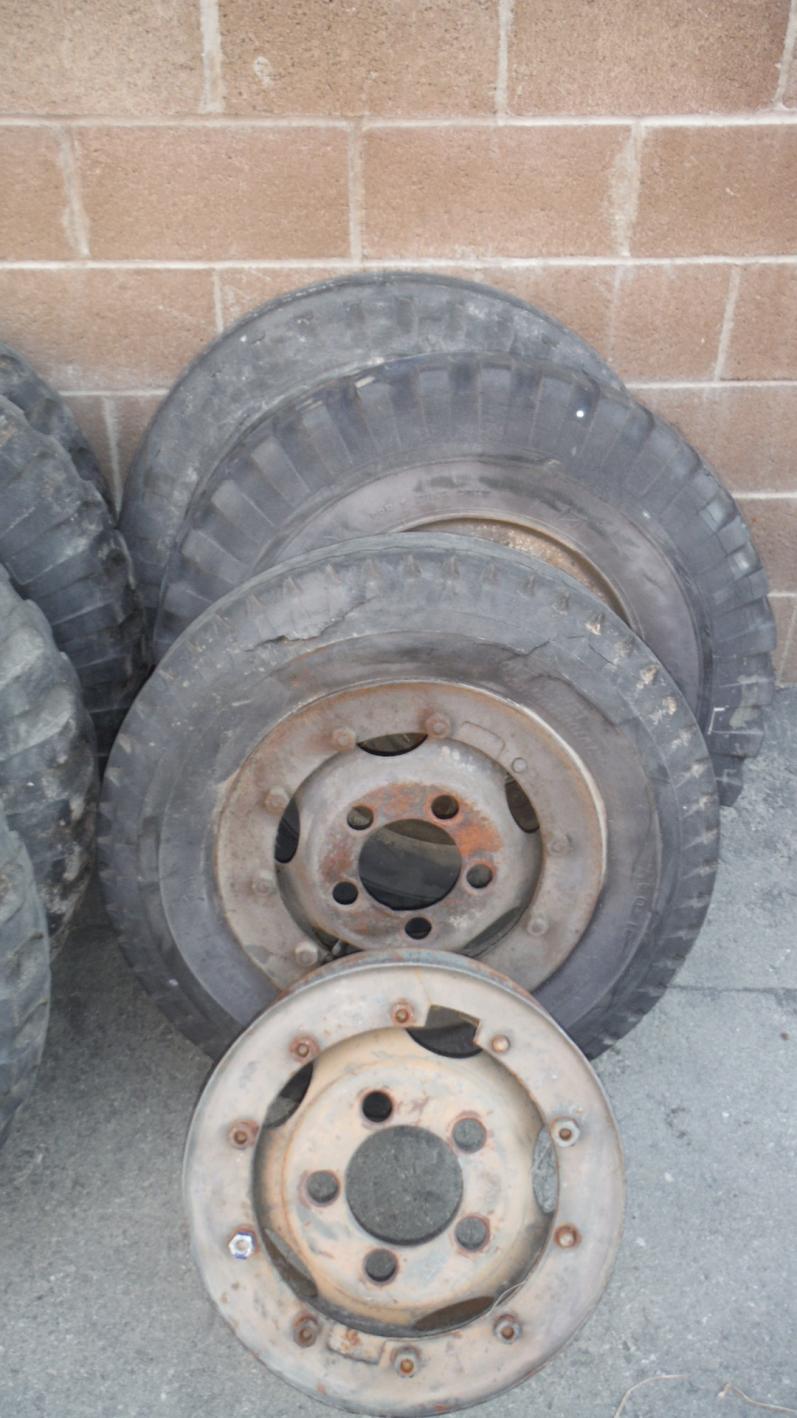 1) One set of 4 xlnt orig. finish and WWII markings, with very good ND tires at $275 ea.