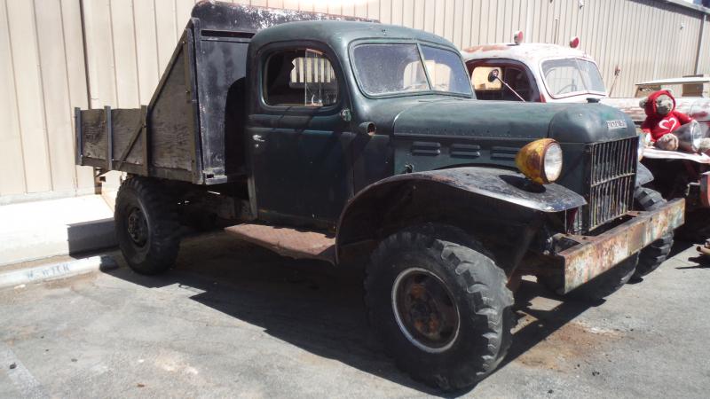 1952 Dodge B-3-PW 1-ton 4x4 Power Wagon with a “dump-flat bed”. The PTO drives a pump in the back that lifts the bed (cond. Unknown). The orig. T-137 engine is complete….and turns over, but not running. Electrical converted to 12 volt. Drive train is complete.......non-functioning brakes. Windshield frame, doors (with inside panels, handles & regulators) and body in great condition. Gauge set complete and all the data plates. Nice steering wheel. Period heater included. Seat is complete. I will provide a Calif DMV bill-of-sale. Sold as-is $5250
