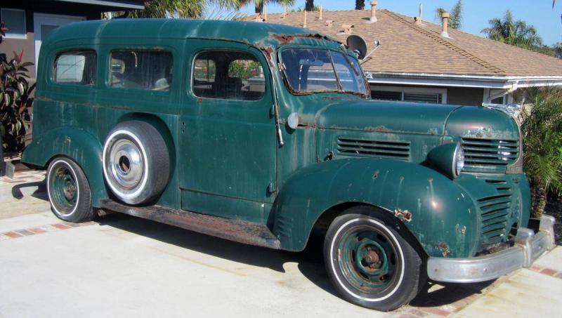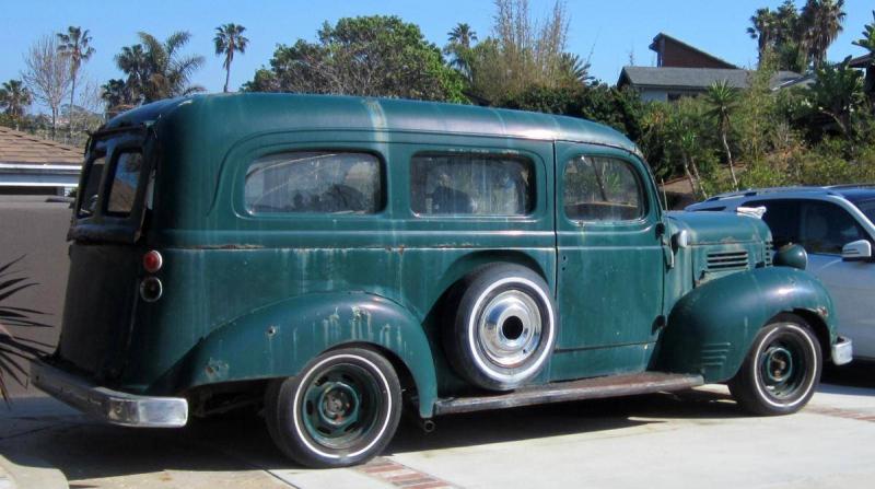 1942 Dodge WC-48 ½ ton Carryall with Chev. V-8 and auto transmission (not running). Only 374 produced in WWII. Complete, but badly rusted and needs total restoration of this very scarce Dodge. Tailgates need rebuilding. Spare tire mount w/spare tire. Some of the windows are cracked. But, all the window regulators are there. Good chrome bumpers. Bucket seats in front. Calif. title and plates with Non-Op.. Price $1950.