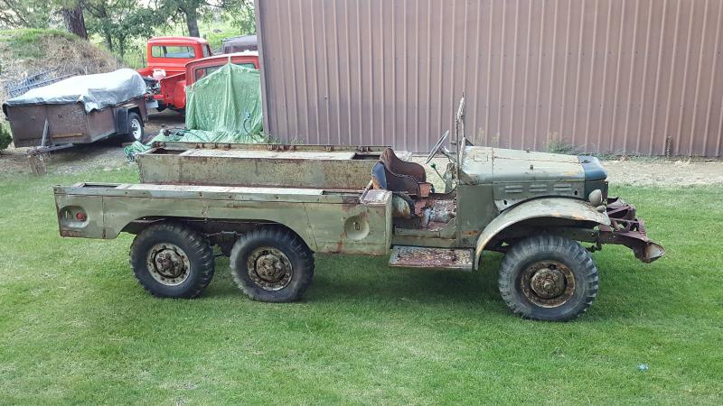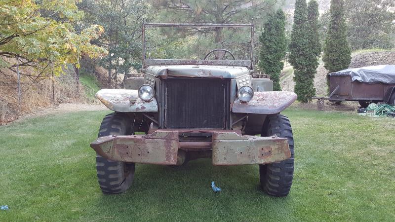 1942 Dodge WC-62, 6x6 combat rims w/good tires, orig. bucket seats & windshield frame……We have not tried to start it yet. Orig. set up for winch…but, missing. I was told it runs well. Includes the grill & radiator. $8950
