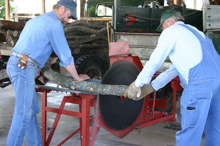 That is me...er...I mean "Junior" in the left of the photo, feeding wood into the cordwood saw. To my right is my big brother "Spence", A.K.A. Todd Somers. We are at the business end of my '47 WDX and my '51 B3PW in the background.